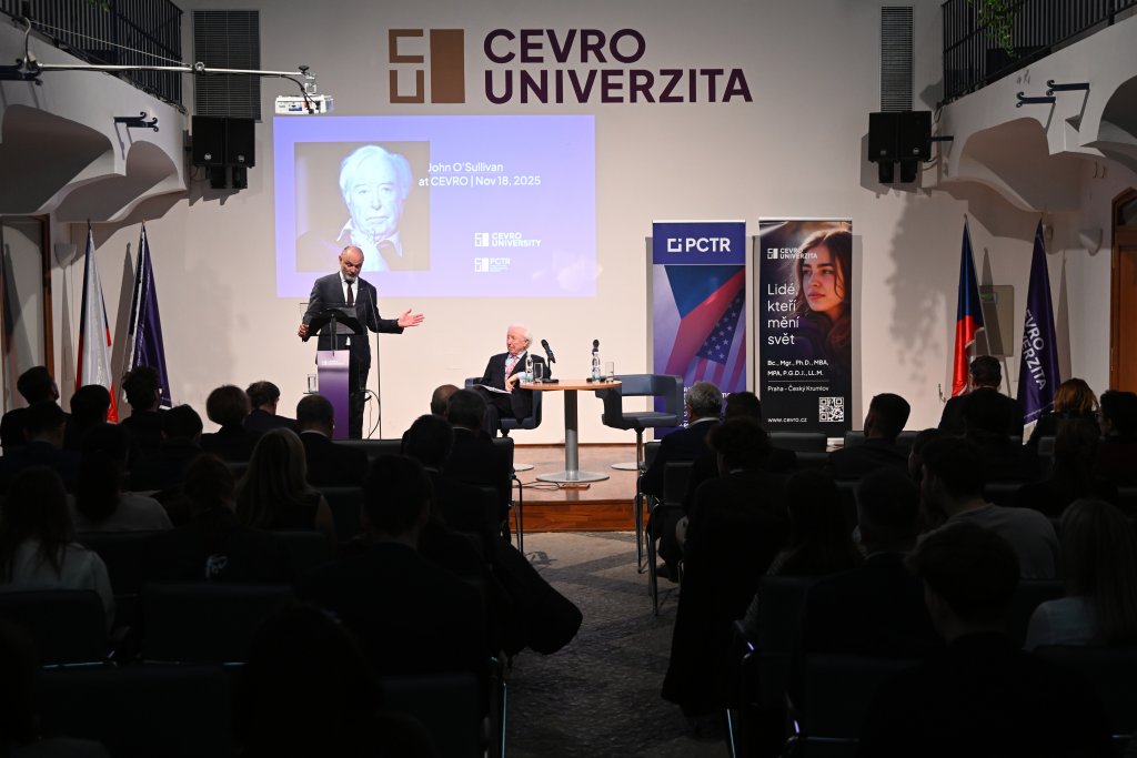 CEVRO Univerzita se na jeden večer nesla v duchu odkazu Margaret Thatcherové. Škola přivítala jejího dlouholetého spolupracovníka a poradce Johna O’Sullivana, který před zaplněným atriem vystoupil s inspirativní přednáškou. Následná diskuse se věnovala nejen osobnosti političky, jež by letos oslavila sto let, ale také jejímu zásadnímu vlivu na britskou i světovou politiku a ekonomiku